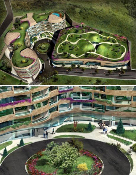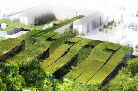 土耳其One & Ortakoy建筑群 這個名為“One & Ortakoy”的多功能建筑群位于土耳其的伊斯坦布爾。它擁有彎曲的有機形態(tài)以及被綠草和鮮花覆蓋的起伏屋頂,與所在的美麗山區(qū)融為一體。這個建筑群位于奧爾塔科伊附近地區(qū),現正在建造之中。它由兩座建筑構成,正面使用天然石頭打造。其中一座是住宅建筑,另一座則是商用建筑。 4.法國綠屋頂中學