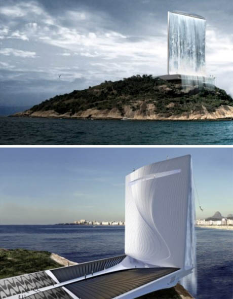 巴西巨型發(fā)電塔 RAFAA建筑設計事務所為2016年巴西里約熱內盧奧運會設計的“太陽能城市塔”可在白天利用太陽能發(fā)電,日落后再利用抽蓄水系統發(fā)電。它的最大亮點當屬一個又大又高的瀑布,好像來自天空,給人一種超現實的感覺。發(fā)電塔將為奧運會提供大量電量,象征大自然力量的瀑布傾瀉而下場面只在特定場合時出現。 |