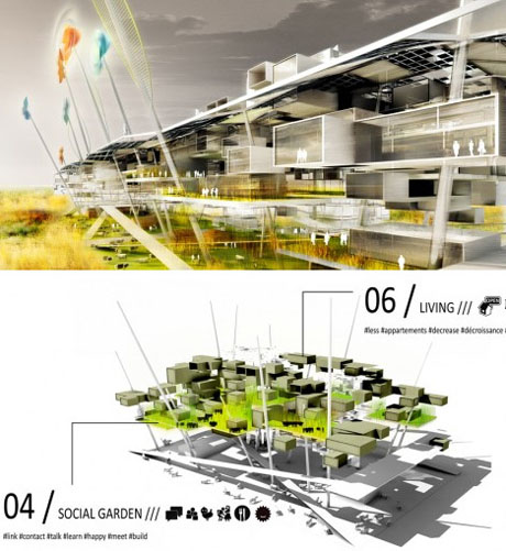 集雨摩天樓 如何讓建筑在最大程度上收集雨水?H3AR設計的集雨摩天樓可能給出答案。借助于覆蓋整個外部的水槽網,雨水將直接流入一個處理廠。處理后獲得的生活用水可用于沖馬桶、洗衣服、其他清洗工作以及澆灌植物。根據H3AR的設計,摩天樓的皮膚與屋頂上一個巨大的碗狀雨水收集設施結合在一起,在最大程度上獲取雨水。 7.法國第戎多功能生態(tài)區(qū)