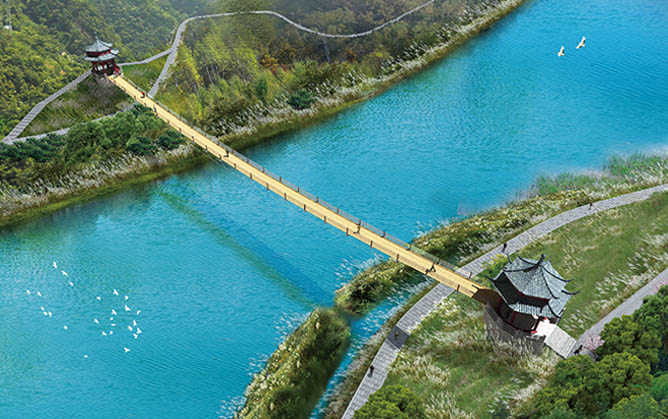 項(xiàng)目包括景觀亭、親水木棧道、綠化澆灌、濕地公園、跨河橋梁