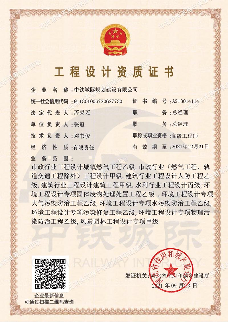 • 市政行業(yè)(燃氣工程、軌道交通工程除外)工程設(shè)計甲級