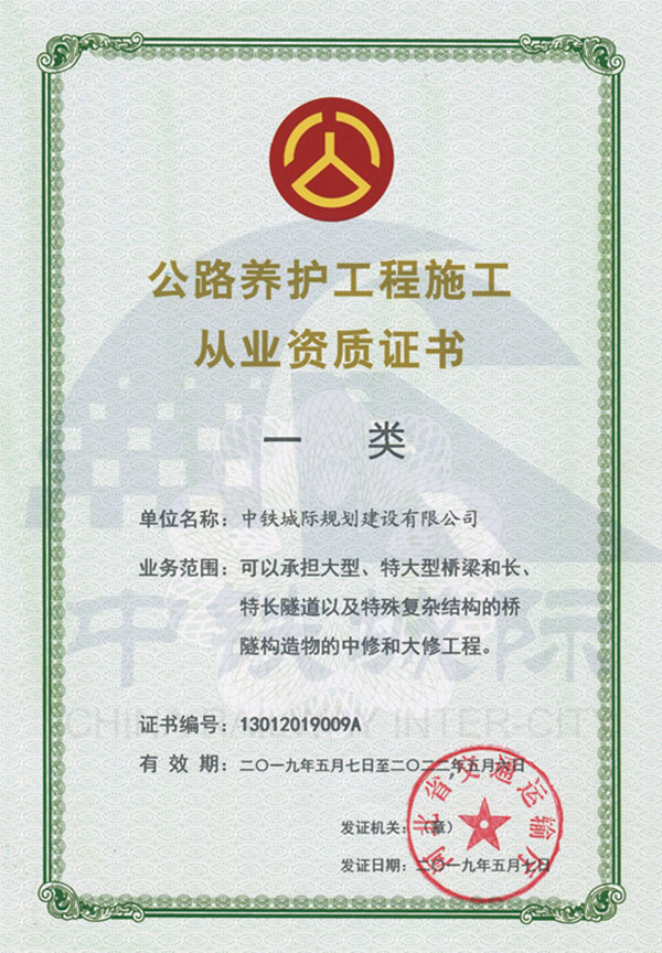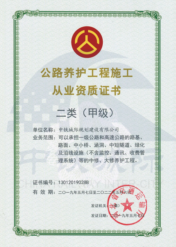 • 公路養(yǎng)護工程施工一類資質(zhì)