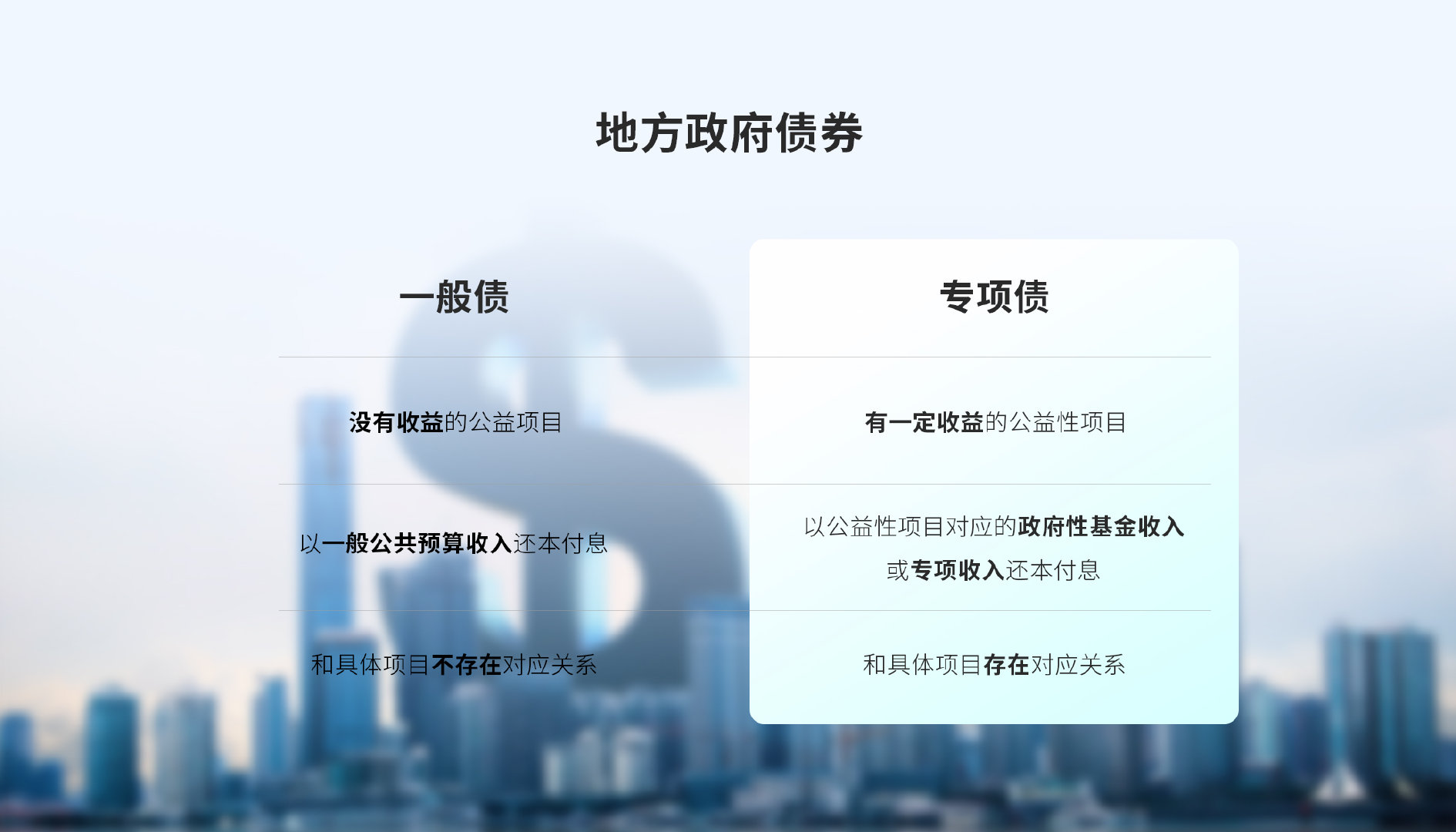一般債運(yùn)用于沒有收益的公益性項(xiàng)目,是以一般公共預(yù)算收入還本付息的,和具體項(xiàng)目不存在對應(yīng)關(guān)系,也就是說,不需要具體問題、具體分析;