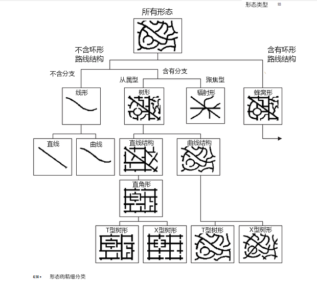 另一些分類法模式側(cè)重于城市街道的形態(tài)學(xué),馬歇爾在《街道與形態(tài)》里對此有詳細(xì)論述: