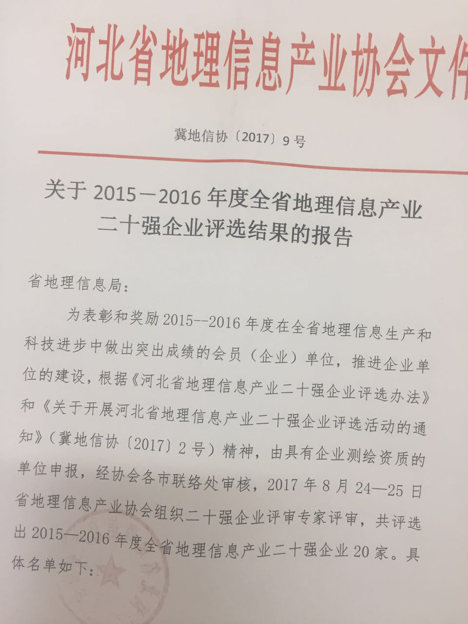 參觀時我去聽取了宣處長講話,局里領(lǐng)導(dǎo)對我單位高度認(rèn)可,今年我單位參加了《2015-2016年度全省地理信息產(chǎn)業(yè)二十強企業(yè)評選》,很榮幸評上2015-2016年度全省地理信息產(chǎn)業(yè)二十強企業(yè),對于以后的測繪工作,我們單位也會再接再厲,努力創(chuàng)出更多佳績。