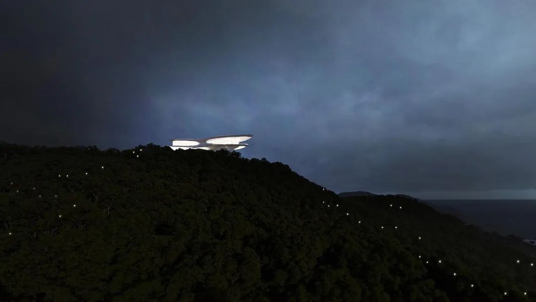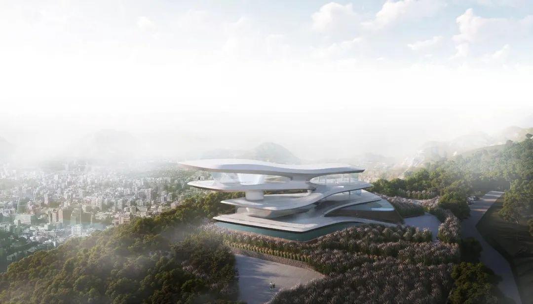 本次設(shè)計項目——云海驛站位于鹽田區(qū)三洲田森林公園核心區(qū)的海拔 378m 馬巒山山頂,總占地800平方米,是鹽田區(qū)半山公園帶重要景觀節(jié)點。項目背靠三洲塘水庫,直面大鵬灣,擁有 360°一覽山海城的獨特視景,是馬巒山絕佳的觀景瞭望之地。