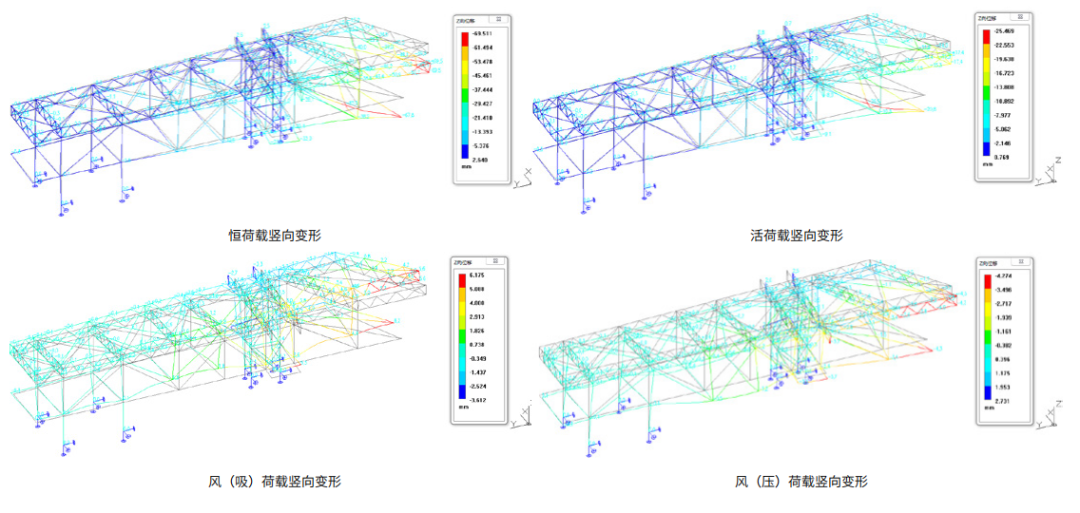 大懸梁和受力支點偏心為結(jié)構(gòu)特點,以風(fēng)荷載、豎向荷載控制為主,主梁采用鋼結(jié)構(gòu)框架,經(jīng)分析論證,建筑物的抗風(fēng)能力能夠防范 12 級以上的臺風(fēng)。