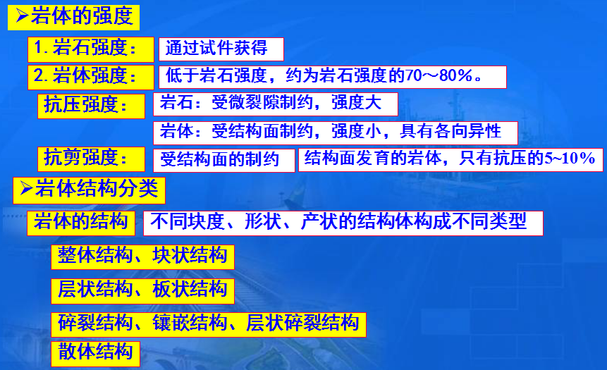 巖石與巖體的區(qū)別:巖石具有勻質(zhì)、連續(xù)、各向同性的性質(zhì),巖體具有明顯的非勻質(zhì)、不連續(xù)、各項(xiàng)異性。
