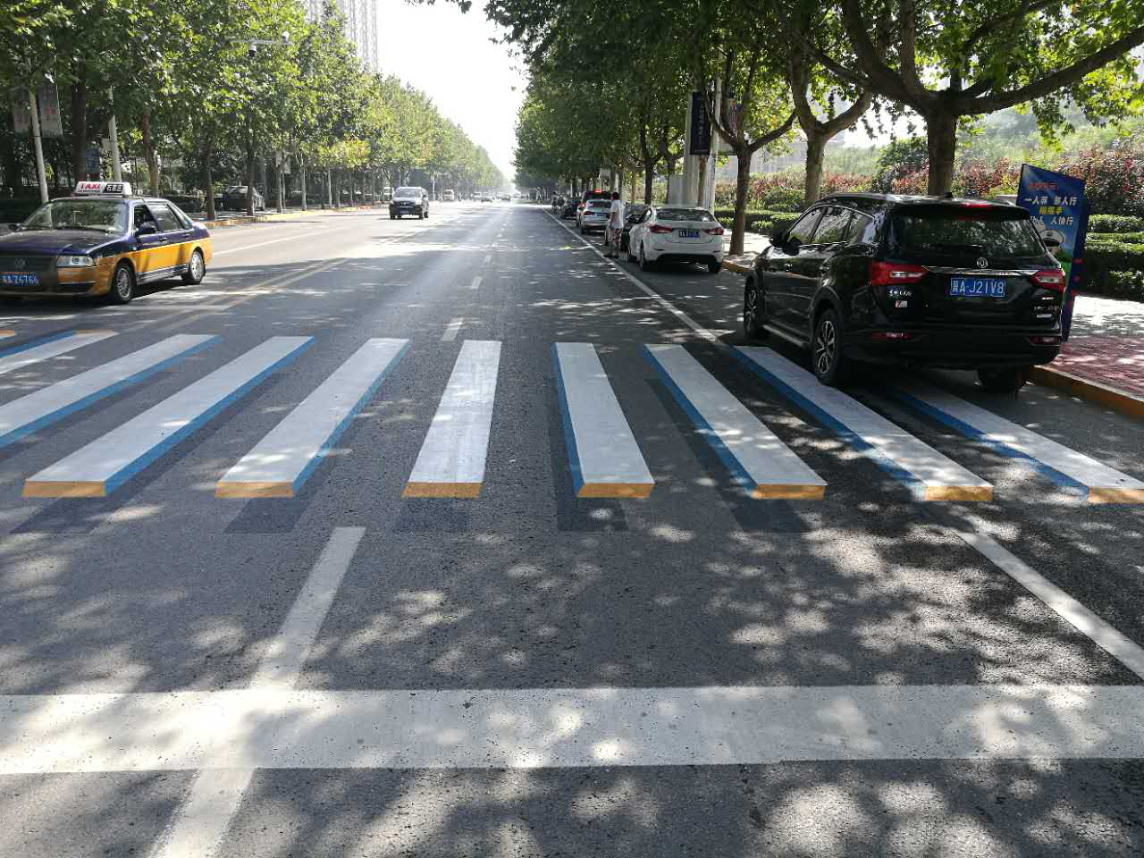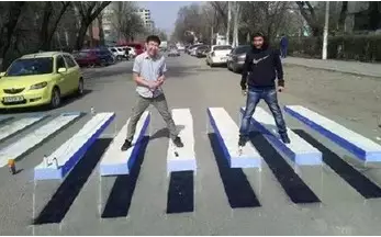 沒錯(cuò),不是你眼花了,這是石家莊城區(qū)首次規(guī)劃的3D立體斑馬線,以前只看過3D電影,玩過3D游戲,3D斑馬線還是頭一次見。石家莊的首條3D斑馬線亮相塔南路(建華大街-翟營南大街)南王學(xué)校門口,3D斑馬線由黃白藍(lán)三色組成,立體感十足,給普通的白色斑馬線加上“陰影”的理念,使斑馬線“站”起來,給交通參與者帶來不小的視覺沖擊。不少司機(jī)以為遭遇了“路障”,在很遠(yuǎn)的地方就下意識地減速、剎車。
