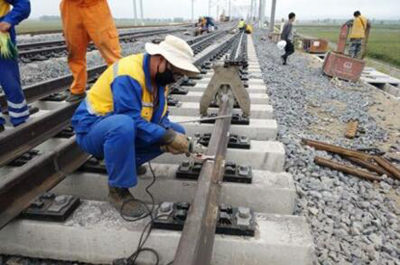采用邊鋪設(shè)邊焊接的流水線(xiàn)作業(yè),夏天晚上施工,爭(zhēng)取搶在今年入冬前完成鋼軌焊接。
