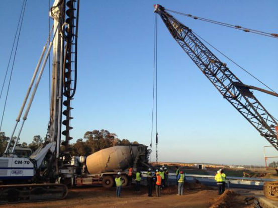 (2)坍落度過大或過小,檢測混凝土坍落度是否滿足要求,坍落度過大了,容易產(chǎn)生泌水、離析現(xiàn)象,在短時間內(nèi)出現(xiàn)粗骨料下沉,水泥漿浮在上面。使鋼筋籠下行阻力增大,導(dǎo)致鋼籠不能到位;坍落度過小,仍然會增加下籠難度,因此在施工過程中必須將坍落度嚴(yán)格控制在18~22cm;