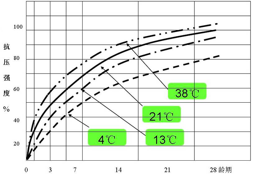 由下圖可以看出:對(duì)于混凝土,28天時(shí)的強(qiáng)度已經(jīng)可以達(dá)到91天時(shí)的強(qiáng)度的85%以上,所以28天的養(yǎng)護(hù)期對(duì)于混凝土來(lái)講已經(jīng)足夠,中鐵城際小編在實(shí)際工程中畢竟要考慮經(jīng)濟(jì)性等因素。