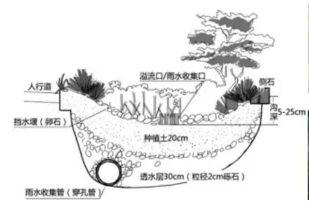 第三是“滯”,主要作用是延緩短時(shí)間內(nèi)形成的雨水徑流量。比如說,通過微地形調(diào)節(jié),讓雨水慢慢地匯集到一個(gè)地方,用時(shí)間換空間。我們城市內(nèi)的降雨,是按分鐘計(jì)、按小時(shí)計(jì)的,這跟大江大河不一樣。城市內(nèi)短歷時(shí)強(qiáng)降雨,對(duì)下墊面產(chǎn)生沖擊,形成快速徑流,積水?dāng)€起來就導(dǎo)致內(nèi)澇。因此,“滯”非常重要,可以延緩形成徑流的高峰。