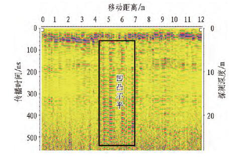 2) 確保探測表面平整或適當(dāng)調(diào)節(jié)天線與地面距離,保證天線與探測表面平行,注意清理底板積水,減少積水對探測的影響。
