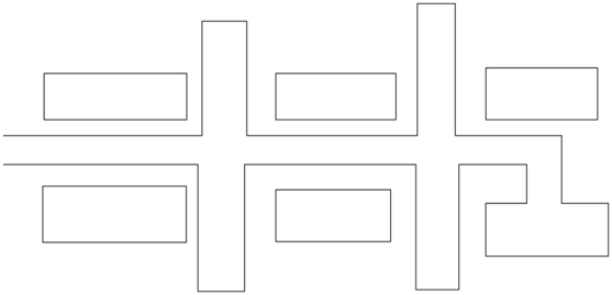 混合式布置形式同時具有環(huán)狀式和盡頭式兩種布置形式的特點。在滿足運輸?shù)囊髼l件下,既能兼顧貨流、人流的通暢。又能較好的適應(yīng)廠區(qū)地形、地質(zhì)條件。其布置形式比較靈活,可適用于各種類型的企業(yè),如圖所示。