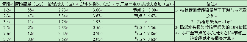 由此可見,用水點距離泵站越遠,用水量越大,則水頭損失越大。