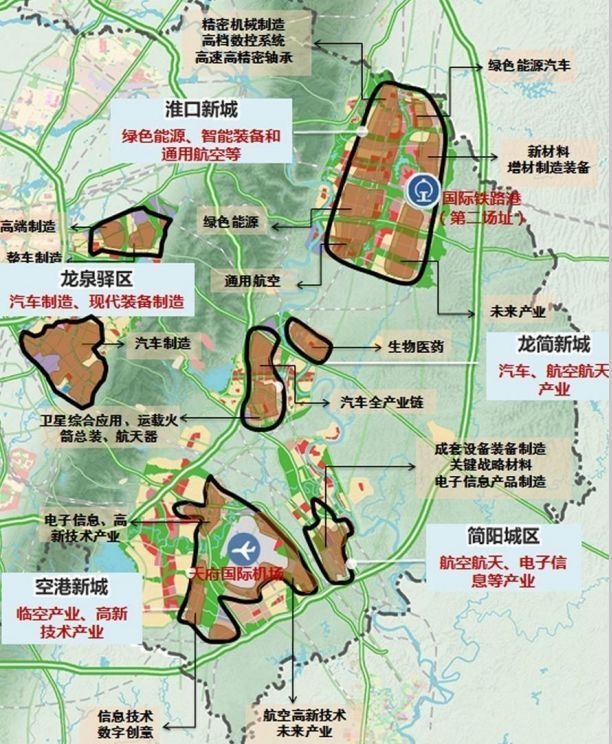 簡(jiǎn)陽新城:航空航天、電子信息等產(chǎn)業(yè),包含成套設(shè)備裝備制造、關(guān)鍵戰(zhàn)略材料、電子信息產(chǎn)品制造等