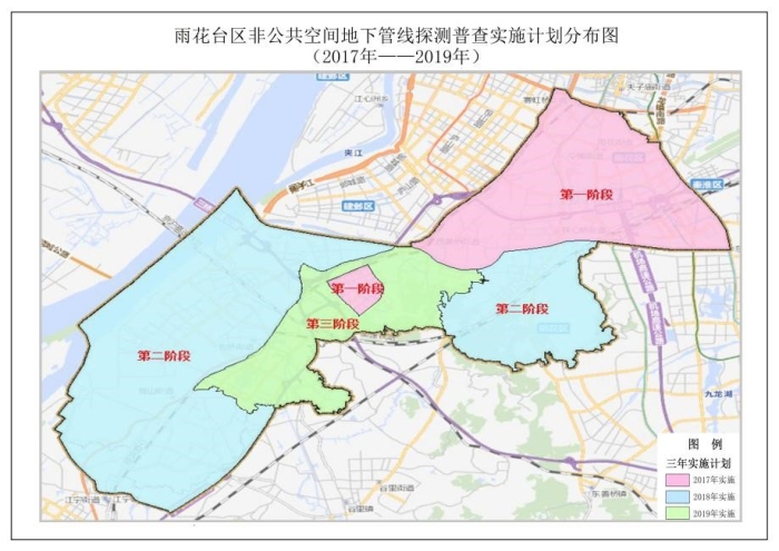 雨花臺區(qū)公共區(qū)域地下管線普查總長為3705公里。非公共空間地下管線總長度預(yù)估約為 4300 公里,于 2017 年 9 月啟動,分三年逐步實施,2019年12月底完成任務(wù)。