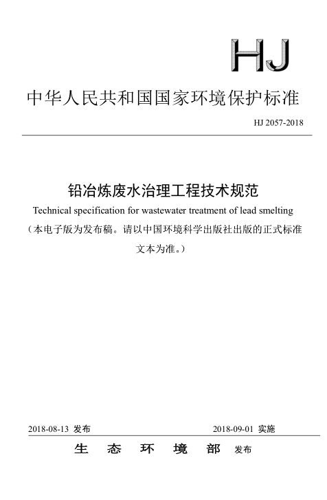 近日,國(guó)家環(huán)境保護(hù)標(biāo)準(zhǔn)《鉛冶煉廢水治理工程技術(shù)規(guī)范》發(fā)布, 9月1日實(shí)施,詳情如下: