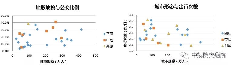 研究發(fā)現(xiàn),除了城市規(guī)模,城市之間的差異體現(xiàn)在許多方面,如城市地理環(huán)境、空間形態(tài)、城市職能、區(qū)位等,這些差異都或多或少地帶來交通特征的差異。尤其是改革開放以來,各城市發(fā)展的速度差異導(dǎo)致發(fā)展階段的差異。城市間的差異直接帶來經(jīng)濟(jì)水平、存量地區(qū)規(guī)模、機(jī)動車擁有、交通設(shè)施水平等的分化,導(dǎo)致不同的出行特征,包括出行距離分布、交通結(jié)構(gòu)、出行目的、時間分布等。這種差異性不僅體現(xiàn)在城市之間,還體現(xiàn)在城市內(nèi)部不同功能、強(qiáng)度、發(fā)展階段的地區(qū)之間。