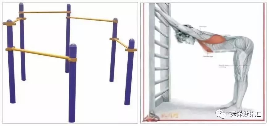 圖3.4(右) 健身器械肋木和背部拉伸運(yùn)動(dòng)示意