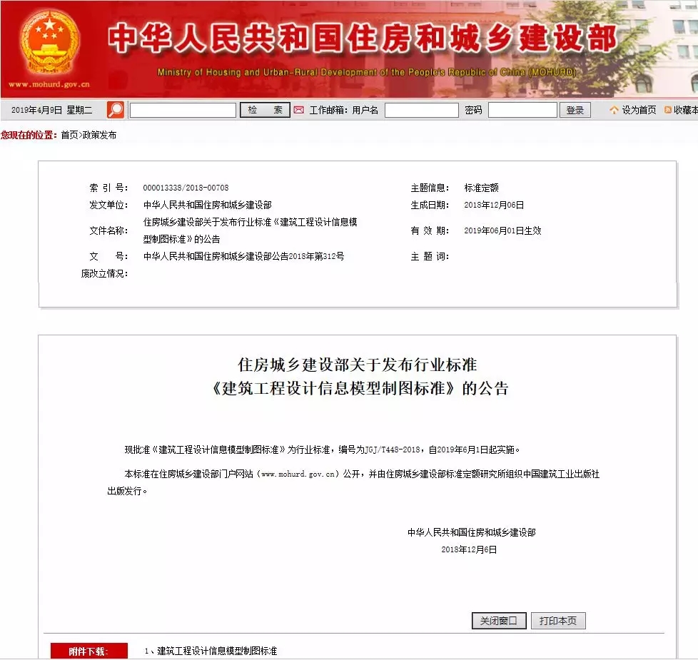 昨日,住建部官網(wǎng)發(fā)布了“住房城鄉(xiāng)建設(shè)部關(guān)于發(fā)布行業(yè)標(biāo)準(zhǔn)《建筑工程設(shè)計(jì)信息模型制圖標(biāo)準(zhǔn)》的公告”,批準(zhǔn)《建筑工程設(shè)計(jì)信息模型制圖標(biāo)準(zhǔn)》為行業(yè)標(biāo)準(zhǔn),編號(hào)為JGJ/T448-2018,自2019年6月1日起實(shí)施。