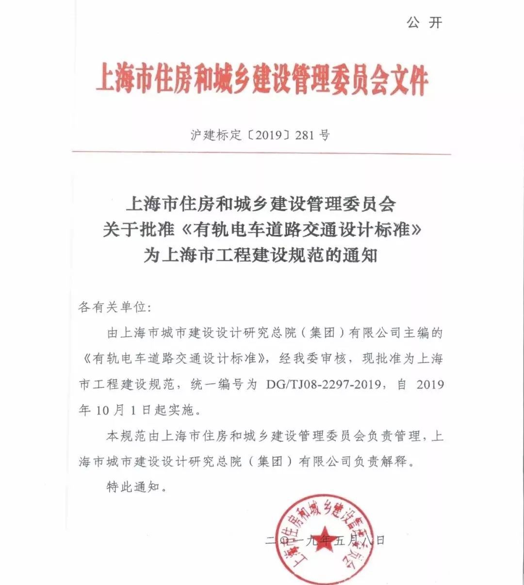 上海市工程建設(shè)規(guī)范《有軌電車道路交通設(shè)計標(biāo)準(zhǔn)》發(fā)布