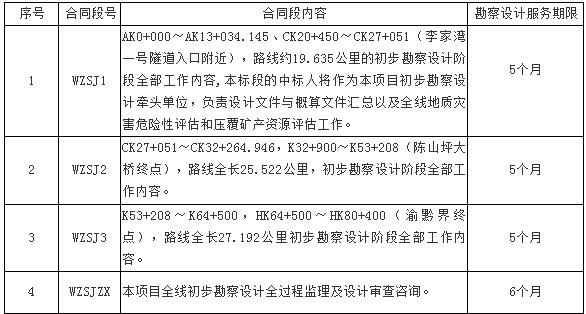 萬盛至正安高速公路重慶段啟動初步勘察設(shè)計(jì),2019年6月4日發(fā)布了初步勘察設(shè)計(jì)及技術(shù)咨詢服務(wù)招標(biāo)公告。據(jù)悉萬盛至正安高速公路重慶段劃分4個(gè)合同標(biāo)段。估算總投資162.7億元,建安費(fèi)約118.4億元。