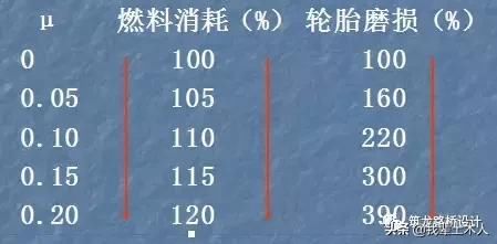 μ的舒適界限,由0.10到0.16隨行車速度而變化,設(shè)計中對高、低速路可取不同的數(shù)值。