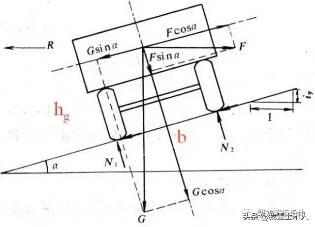 由于路面橫向傾角α一般很小,則sinα≈tgα=ih,cosα≈1,其中ih稱為橫向超高坡度,