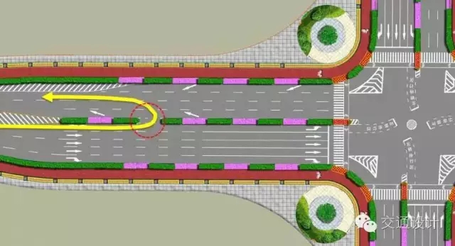 2)適用于路段不適宜設(shè)置掉頭的情況;