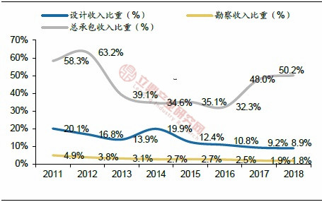 ——隨著總承包模式的推廣和PPP模式的快速推進(jìn),設(shè)計(jì)行業(yè)發(fā)展趨勢(shì)使工程總承包的收入比重提升。