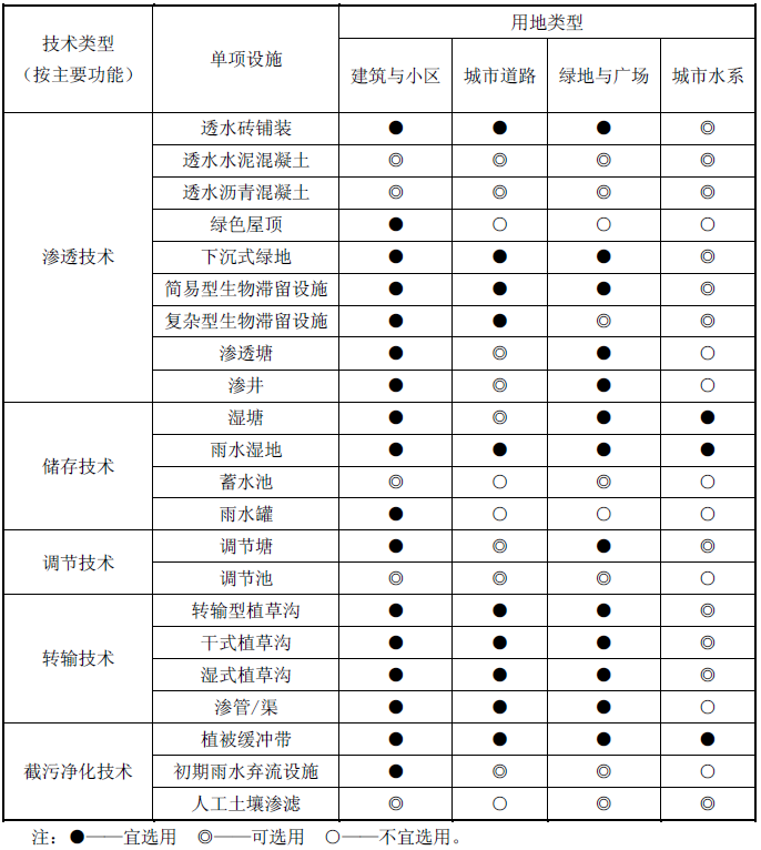 表1 各類(lèi)用地中低影響開(kāi)發(fā)設(shè)施選用一覽表