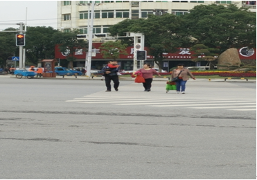 ?。ㄎ澹┬腥诵盘?hào)燈未開啟,導(dǎo)致行人過街時(shí)與車輛沖突點(diǎn)增多,如圖-4所示。
