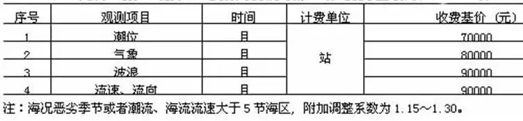 注:1.海況分級見《海濱觀測規(guī)范》;2.本表同時具備兩項及以上因素的,按照最高類別計算收費。