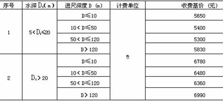 注:1.單波束測量執(zhí)行通用工程勘察水域測量收費標準;