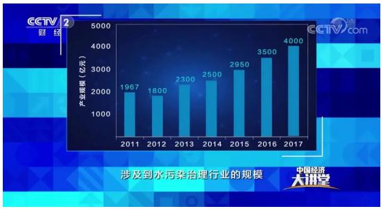 這張圖顯示出在2015年以后涉及到水污染治理行業(yè)的規(guī)模逐漸地增加,2014年時(shí)是2500億元,2015年則變成2950億元,2017年達(dá)到4000億。從2500億元到4000億元是跨越式的發(fā)展,按照現(xiàn)在的估計(jì)如果完成“水十條”的話會(huì)帶動(dòng)社會(huì)投資4.7萬(wàn)億元,而能夠帶動(dòng)環(huán)保產(chǎn)業(yè)增長(zhǎng)是1.9萬(wàn)億元,這個(gè)數(shù)字表明環(huán)境治理它不是一個(gè)僅花錢不掙錢的事情,它還能帶動(dòng)社會(huì)經(jīng)濟(jì)快速和高質(zhì)量發(fā)展。