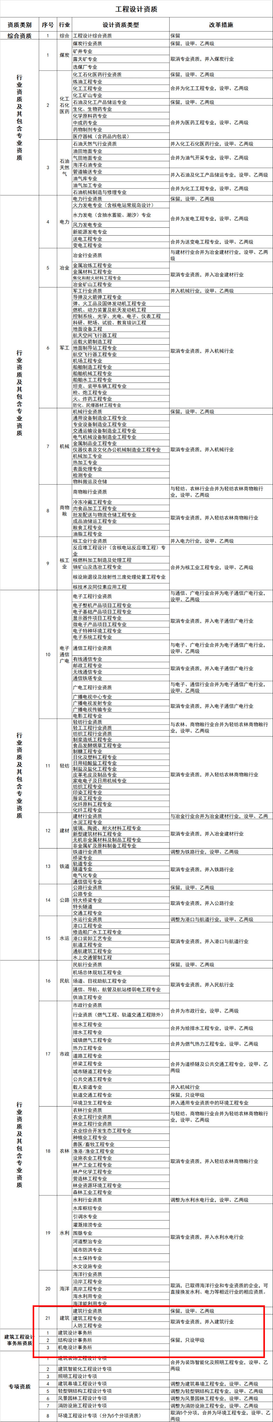 2、工程設(shè)計資質(zhì)。保留綜合資質(zhì)。對部分行業(yè)資質(zhì)進行整合。