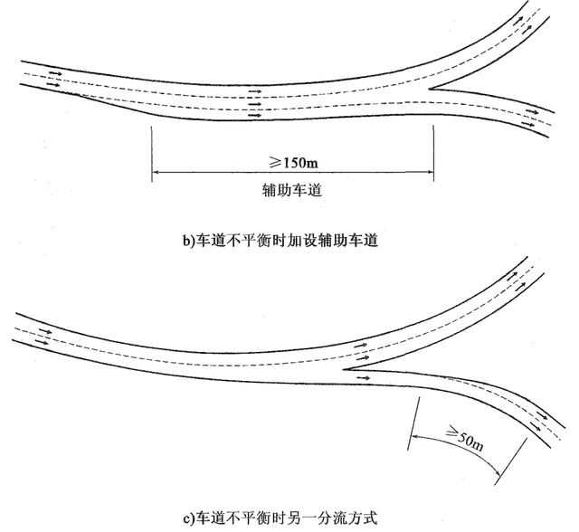 分合流車道平衡應(yīng)理解為交通量與車道數(shù)和通行能力的平衡,不是簡單車道個數(shù)的平衡。