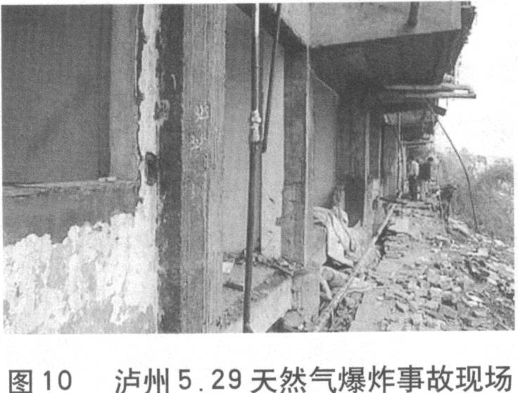 1.2006年8月30日上午,重慶市南岸區(qū)在進(jìn)行道路改造施工時(shí),挖掘機(jī)不慎將天然氣主管道挖破,導(dǎo)致天然氣猛烈外噴,氣柱高達(dá)近十米。事故發(fā)生后,上千戶居民被緊急疏散,未造成人員傷亡,當(dāng)?shù)鼐用竦娜粘I钍艿酵庥绊憽?br /> 2、2004年5月29日19時(shí)45分,瀘州市納溪區(qū)炳靈路15號(hào)居民樓人行道下,突然發(fā)生劇烈的天然氣爆炸事故,造成5人死亡,35人不同程度受傷,附近一樓10余居民的家園被毀,臨街一樓12間門(mén)面受損,近50米長(zhǎng)范圍內(nèi)的街道被震得一片狼藉。事故的原因是:管道局部的防腐層受到外力破壞,導(dǎo)致腐蝕穿孔,該位置正好位于民樓附一層與道路堡坎形成的窄縫中,地勢(shì)較低,聚集大量天然氣,因氣候變化因素發(fā)生膨脹而釋放至窄縫外,與空氣形成爆炸性氣體,遇人行道上不明火源而引發(fā)爆炸。