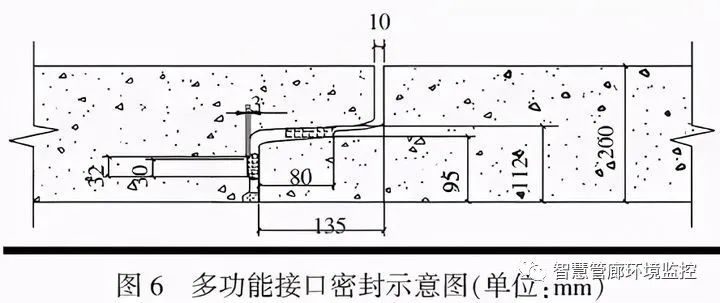 ②地下綜合管廊的設(shè)計(jì)使用年限為100 年,密封膠圈的耐老化性能成為關(guān)鍵,使用數(shù)十年后,橡膠的應(yīng)力松弛、物理性能變化、彈性對混凝土面的擠壓應(yīng)力是否還能滿足接口抗?jié)B要求等成為疑問,而多功能接口不但具有現(xiàn)時接口質(zhì)量可檢性,而且還具備接口質(zhì)量的可補(bǔ)性。當(dāng)接口中使用的膠圈性能不能滿足接口抗?jié)B要求時,可擰開上下接口檢驗(yàn)進(jìn)水通道的螺帽,吹凈其中水分和雜物,接上灌漿設(shè)施,向兩個膠圈之間的空腔內(nèi)灌注防水密封膠液,形成二次柔性密封接口。