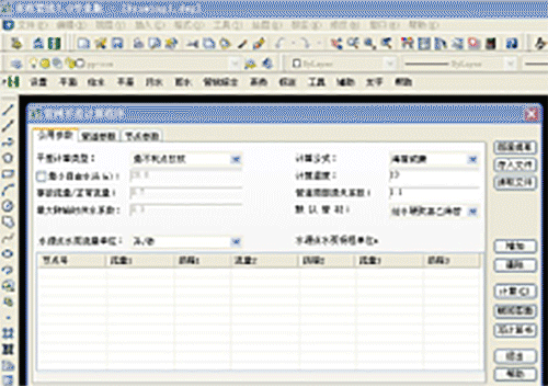 該集鎮(zhèn)供水工程設(shè)計供水范圍為集鎮(zhèn)鎮(zhèn)區(qū)。在選取水源,從水源取水,通過原水輸水管將原水輸送到水廠,經(jīng)處理后的水通過清水輸水管送至500m3高位水池統(tǒng)一供水至配水管網(wǎng)。以下介紹該集鎮(zhèn)區(qū)配水管網(wǎng)的平差計算。圖3為鴻業(yè)市政管線軟件的工作界面。