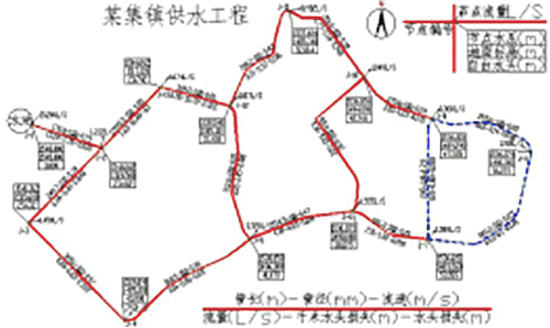 (6)技術(shù)可行的前提下,考慮經(jīng)濟因素。管網(wǎng)建設(shè)的投資一般較大,工程籌資一般比較困難,多有貸款部分,因此設(shè)計考慮盡量節(jié)約工程投資。以最短的管線提供最大的給水范圍,從經(jīng)濟、安全、運輸、施工、維護管理費用低等因素綜合考慮管網(wǎng)定線。