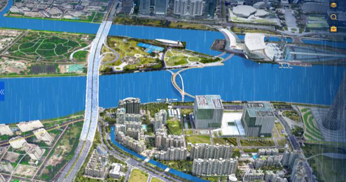 " 例如,通過 CIM 模擬城市發(fā)生降雨,可以結(jié)合降雨強度和地形地貌、以及河道、管線道路上裝的各種傳感器實現(xiàn)對特定區(qū)域的不同淹沒深度所影響的范圍進行模擬分析,提供防澇預(yù)警和決策支持。"