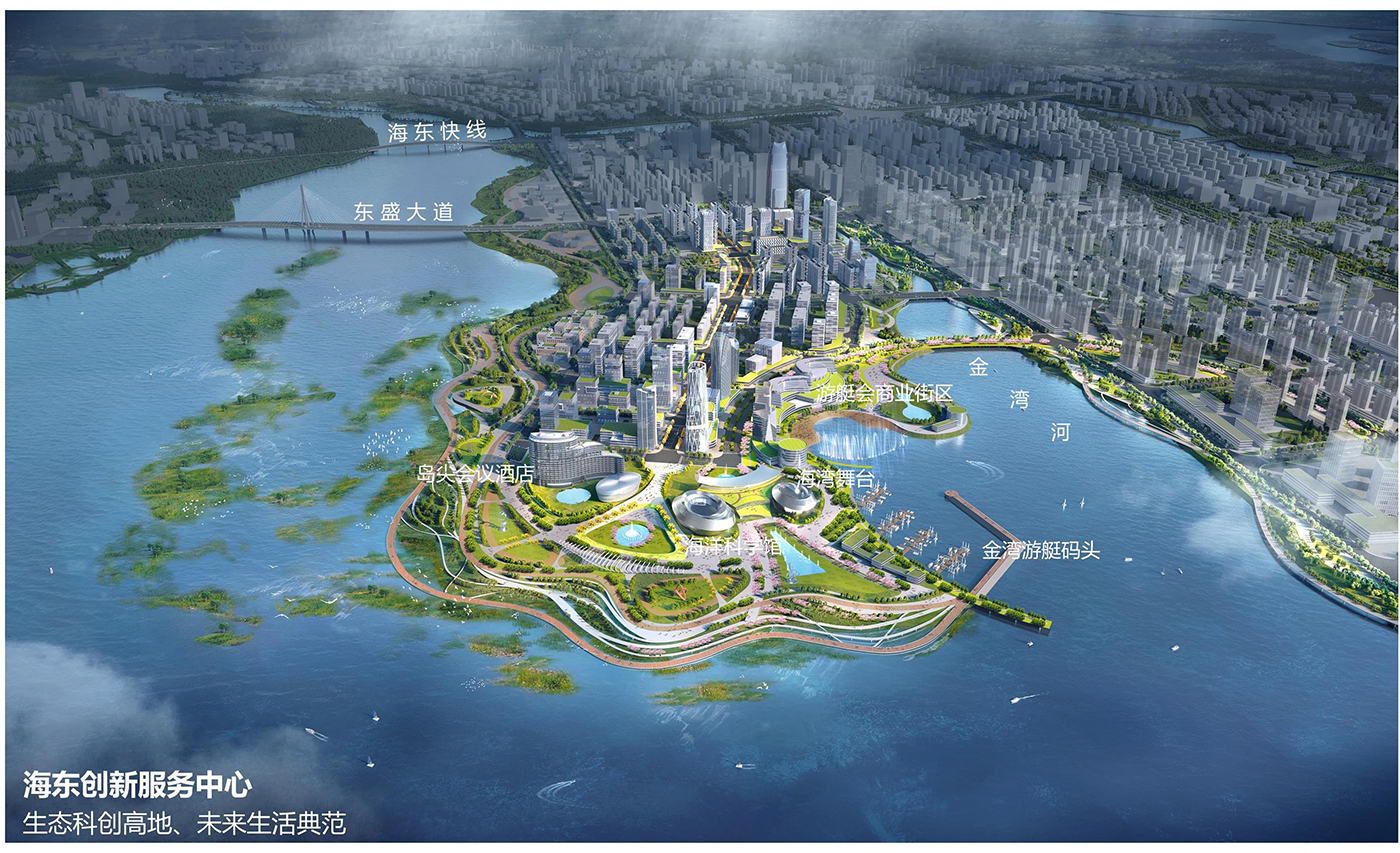 打造海東新區(qū)的生態(tài)創(chuàng)新高地,樹立一灣兩岸創(chuàng)新生活典范。延續(xù)歷版規(guī)劃中的生態(tài)內(nèi)灣,同時將生態(tài)岸線延伸至北岸,形成龍王灣環(huán)島濕地公園。濱海一線實施低強度開發(fā),內(nèi)陸開發(fā)強度梯度式提升,將商娛、科普功能融入濱海濕地公園,提升濱?;盍?。