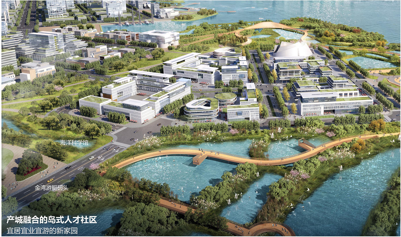 打造湛江藍(lán)色產(chǎn)業(yè)戰(zhàn)略基地,建設(shè)產(chǎn)城融合的島式人才社區(qū)。構(gòu)建生態(tài)廊道貫穿島嶼,由島嶼中心向濱海放射滲透,城市與生態(tài)共生共融,共同勾勒未來生態(tài)的島式生活。總體控制低強度、低密度開發(fā),整體以中低強度,中高密度的產(chǎn)業(yè)園區(qū)為主,引入人才公寓、信息科技園、雙碳體驗中心等配套設(shè)施,提供混合高效的多元空間載體。生態(tài)產(chǎn)業(yè)片區(qū)整體中低強度開發(fā),面向龍王灣局部區(qū)域布置高層塔樓,環(huán)沙咀頭差異化打造西岸、南岸兩類產(chǎn)業(yè)展示面。