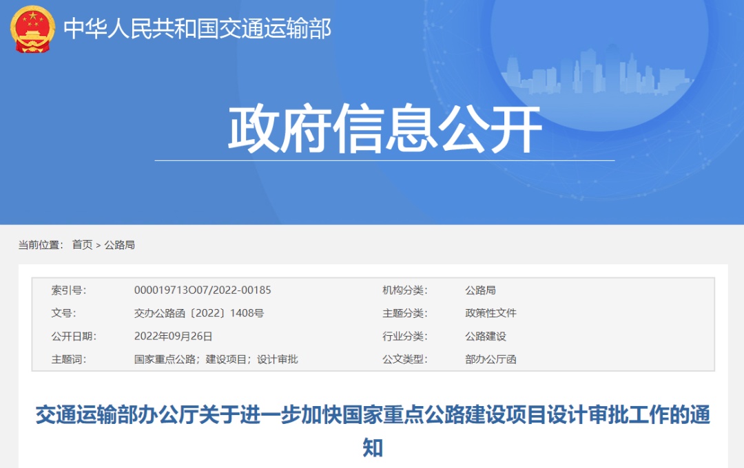 據(jù)交通運(yùn)輸部官網(wǎng)消息,近日,交通運(yùn)輸部辦公廳印發(fā)通知,就進(jìn)一步加快國家重點(diǎn)公路建設(shè)項(xiàng)目設(shè)計(jì)審批工作作出部署。通知從加強(qiáng)設(shè)計(jì)管理、提高設(shè)計(jì)質(zhì)量,優(yōu)化工作流程、加快技術(shù)審查,強(qiáng)化調(diào)度協(xié)調(diào)、及時(shí)辦理批復(fù)三方面提出10項(xiàng)具體措施。