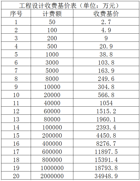 建設工程項目咨詢、評價、設計等收費標準