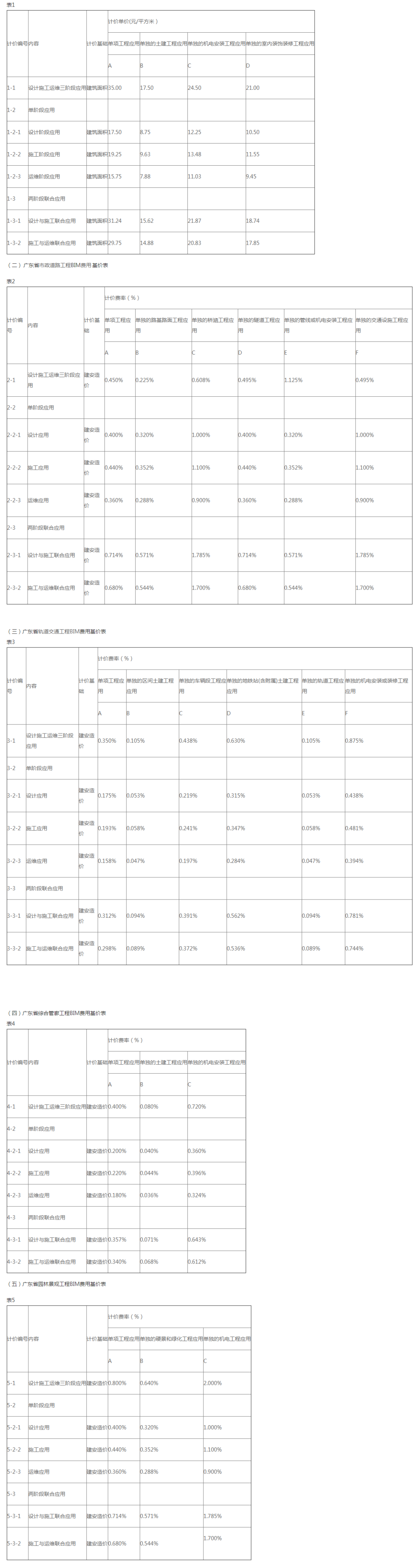 (2)工業(yè)與民用建筑工程,當建筑面積少于2萬平方米時,按2萬平方米作為計價基礎計算建筑信息模型(BIM)技術(shù)應用費用;市政道路工程、軌道交通工程、地下綜合管廊工程的造價少于1億元時,按1億元作為計價基礎計算建筑信息模型(BIM)技術(shù)應用費用;園林景觀工程的造價少于1000萬元時,按1000萬元作為計價基礎計算建筑信息模型(BIM)技術(shù)應用費用。