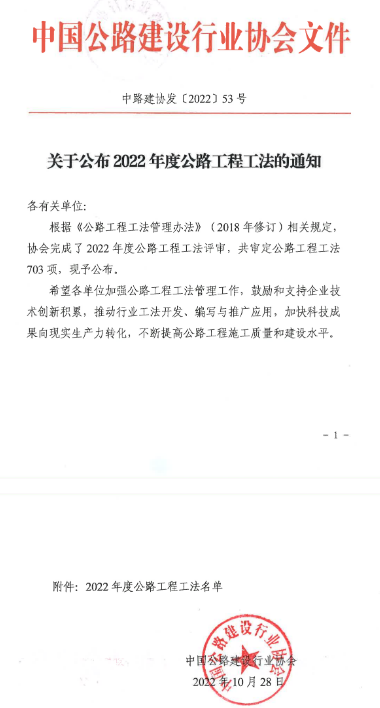 2022年度公路工程工法評(píng)審結(jié)果出爐